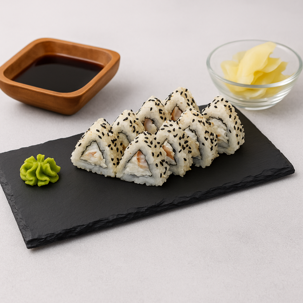 Ролл «Калифорния» в кунжуте с угрём